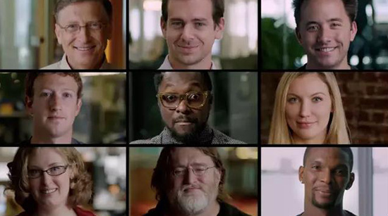 他们是时代先驱,也是寻常父母,深知编程对下一代意义的他们,早在2014年就不遗余力为Code.org举行的“全球编程一小时”活动站台,这些明星包括了微软创始人比尔·盖茨、Facebook 创始人马克·扎克伯格、Twitter 联合创始人杰克·多西以及 Dropbox 联合创始人兼CEO Drew Houston 和 Zappos CEO谢家华等。同时也包括了体育界和政界的一些明星,比如 NBA 迈阿密热火队球星克里斯·波什和美国前总统克林顿和副总统戈尔等——他们都曾有共同的爱好:学编程!