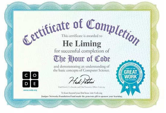 Tip:还可以获得“编程一小时”的官方证书哦: