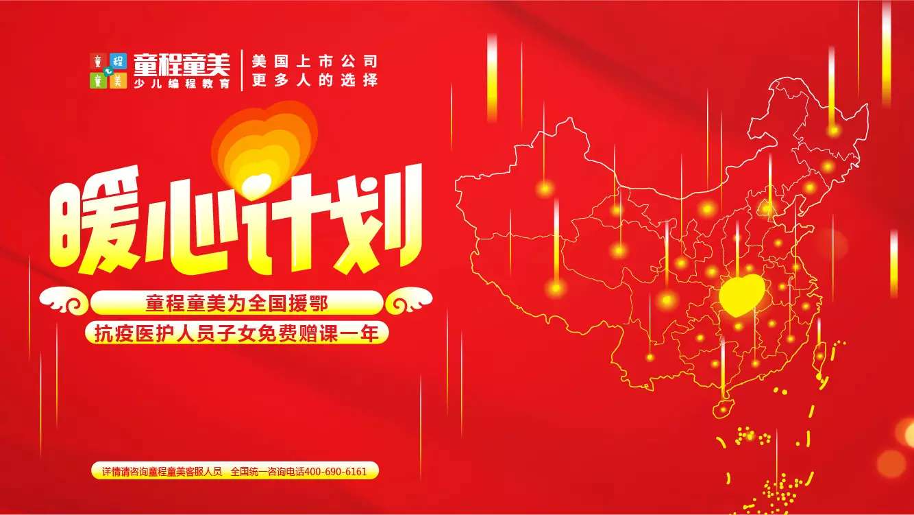 疫情爆发后,无数像李绪言医生一样的白衣战士冲到疫情防控第一线,为全国人民筑起一道坚不可摧的生命防线。在抗疫一线,他们是战士、是英雄,而每到夜深人静,回到住处,家人是否健康,孩子的学习是否落下……是他们最深的牵挂。童程童美推出“暖心计划”正是为了解决英雄们的后顾之忧,用优秀的少儿编程课程助力他们子女成长,为英雄们送去一份温暖!