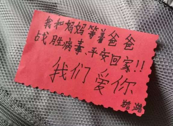 懂事的小锦澔强忍眼泪,嘱咐爸爸一定要照顾好自己,做好防护,并保证自己在家会听妈妈的话,做好学校作业。暖心的锦澔还写了一张贺卡偷偷的放到了爸爸的行李箱中。