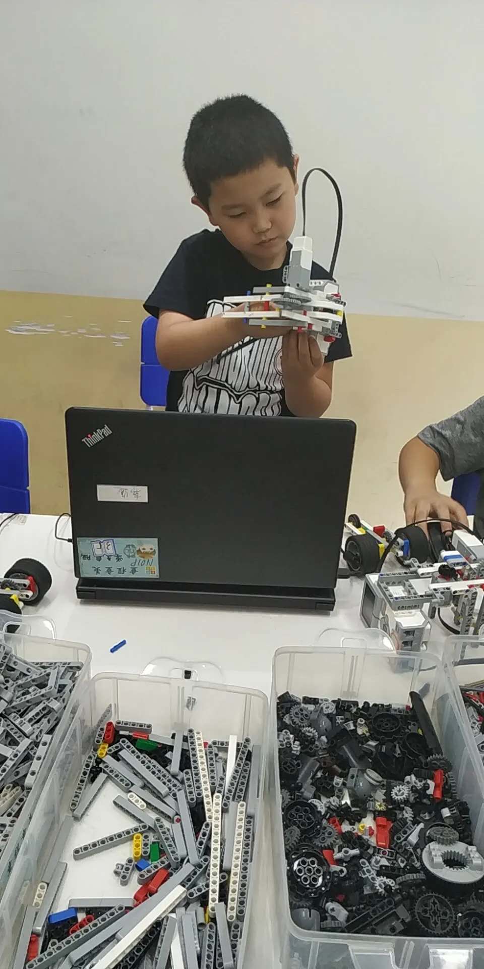 锦澔是一个爱说爱笑有自己独特想法的小男孩,平时喜欢动手搭建乐高。于是,2018年5月,爸爸妈妈给他报名了童程童美的智能机器人EV3编程课,在离家最近的通州万达校区学习。疫情期间,童程童美将线下课程转到线上,锦澔便也在家里跟着授课老师复习,巩固所学的编程知识。