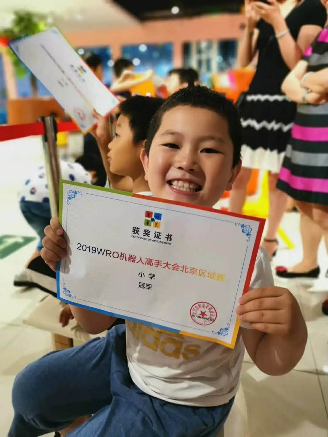 小锦澔在童程童美的班主任安育潔老师介绍:“锦澔是一个很有个性而且好强的孩子,上课听讲和完成机器人搭建都非常认真,动手能力极强,这些应该得益于爸爸的遗传以及良好的家庭教育。他也很有想法,每次都用不同的创意去完成不一样的创作”。在童程童美学习的时间里,他不仅系统的学习了智能机器人编程课程,还一连顺利通过了全国机器人等级考试一至三级,取得了2019WRO机器人高手大会北京区域赛小学组冠军。