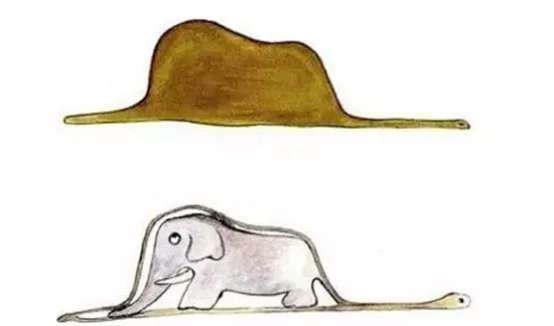 《小王子》中有这样一个情节,小王子画了一幅画,在很多大人眼里这是一顶礼帽,而小王子画的却是蛇吞象。