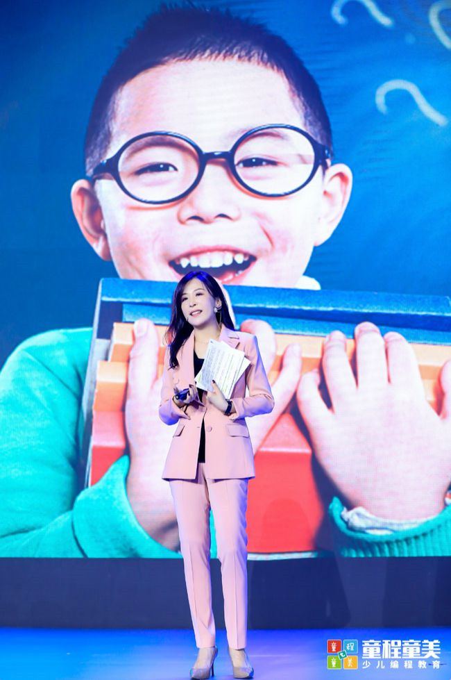 童程童美未来教育研究院首席教育官孙莹女士现场致敬,并发表主题演讲,深入剖析数字时代孩子的学习特点,并强调在数字时代下构建孩子的四大核心能力,提出“1+X素质教育”将大幅提升中国青少年核心竞争力。