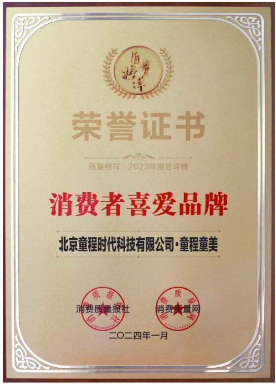 童程童美荣获“质量榜样·2023年度总评榜 消费者喜爱品牌”