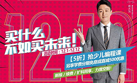 2018年12月1日-12月12日,童程童美双12惠钜重磅来袭!5折抢少儿编程课,另享学费分期免息或直降500!不仅如此~更是新报/续费/扩科同享,力度空前!