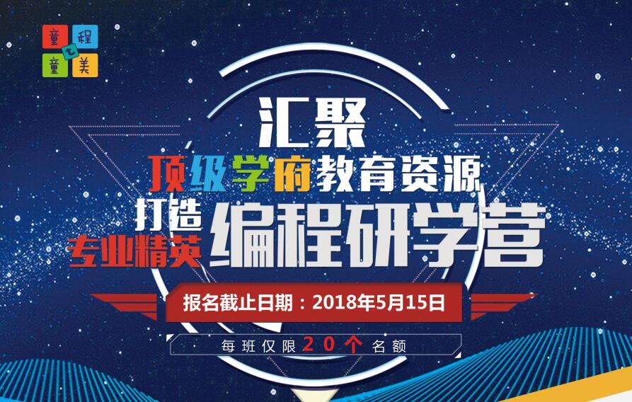 童程童美编程研学营开始啦!汇集顶尖学府教育资源,打造专业精英编程研学营!报名截止日期为2018年5月15日。每班仅限20个名额哦!