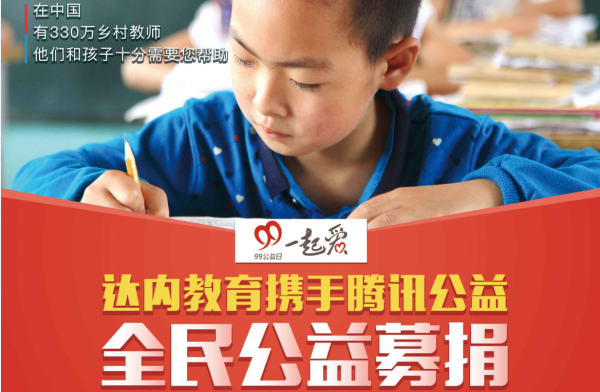 达内教育集团携手友成基金会与腾讯公益共同发起了“20元为乡村教师启梦”的教育公益项目,该项目将于9月7日-9月9日在微信 - 钱包 - 腾讯公益频道正式推出。