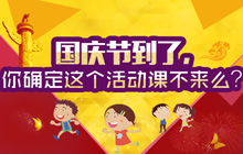 国庆节要到了哦。放假了,你决定怎么过了么?还记得我们那些精彩有趣的活动课么?是不是很羡慕别的小朋友,既能参加活动,又能学到知识?没关系,童程童美以国庆节为主题的活动课来啦!小朋友们,来不来?这样就不用羡慕别的小朋友啦。