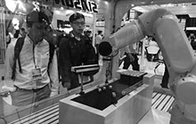 0.8米高的机械手臂在狭小的空间内,按照最短的路径,灵活地把杂乱散落在地上的骰子依次识别并放到指定位置。在近日举行的第五届中国电子信息博览会上,杭州新松机器人自动化有限公司首次演示了一款“瘦身版”机器人,令参观者驻足观赏。