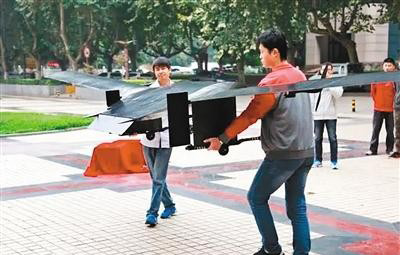 遇到自然灾害时,如果因地面基站的损坏使通信中断,将为搜救工作造成很大困难。而西工大“魅影”团队自主研发的太阳能Wi-Fi无人机一旦投入使用,将能取代地面基站成为天空的信使,让Wi-Fi信号畅通无碍。昨日,西工大相关研制团队表示,这架“网红”无人机占了三个全国第一。