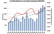 根据美国先进自动化产业协会(Association for Advancing Automation,A3)的最新报告,工业自动化应用的机器人正在北美开始兴盛,估计在2016上半年就有超过8亿美元的订单金额,创下1万4,583台工业机器人采购量的新高纪录,较2015年同期增加2%;而汽车厂商与零组件供应商是工业机器人市场的主要推手。