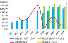 据BCG波士顿咨询测算,截止2016年1月,全球医疗机器人行业每年营收达到74.7亿美元,预计未来5年年复合增长率能稳定在15.4%,至2020年,全球医疗机器人规模有望达到114亿美金。其中,手术机器人占60%左右市场份额。