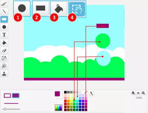 绘制时,我们用到椭圆工具,矩形工具,填充工具和选择工具,颜色样本如下图,你也可以使用其他的颜色绘制。白云和绿灌木丛,是很多的椭圆叠加的效果。地面用一个矩形绘制就可以了。